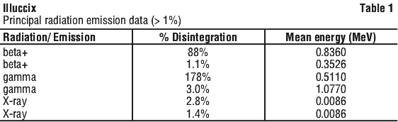 Gallium 68 (Ga-68) decays with a half-life of 68 minutes to stable Zinc-68. Principal radiation emission data and physical decay chart for Ga-68 listed in Table 1 and Table 2.