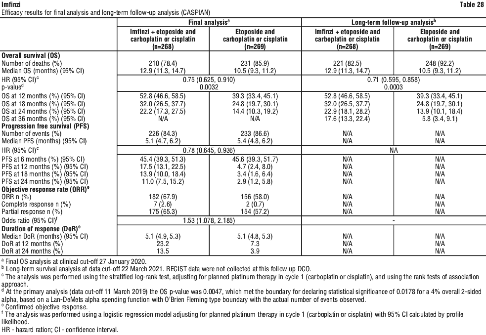The improvements in OS and PFS in favour of patients receiving Imfinzi compared to those receiving placebo were generally consistent across predefined subgroups analysed.