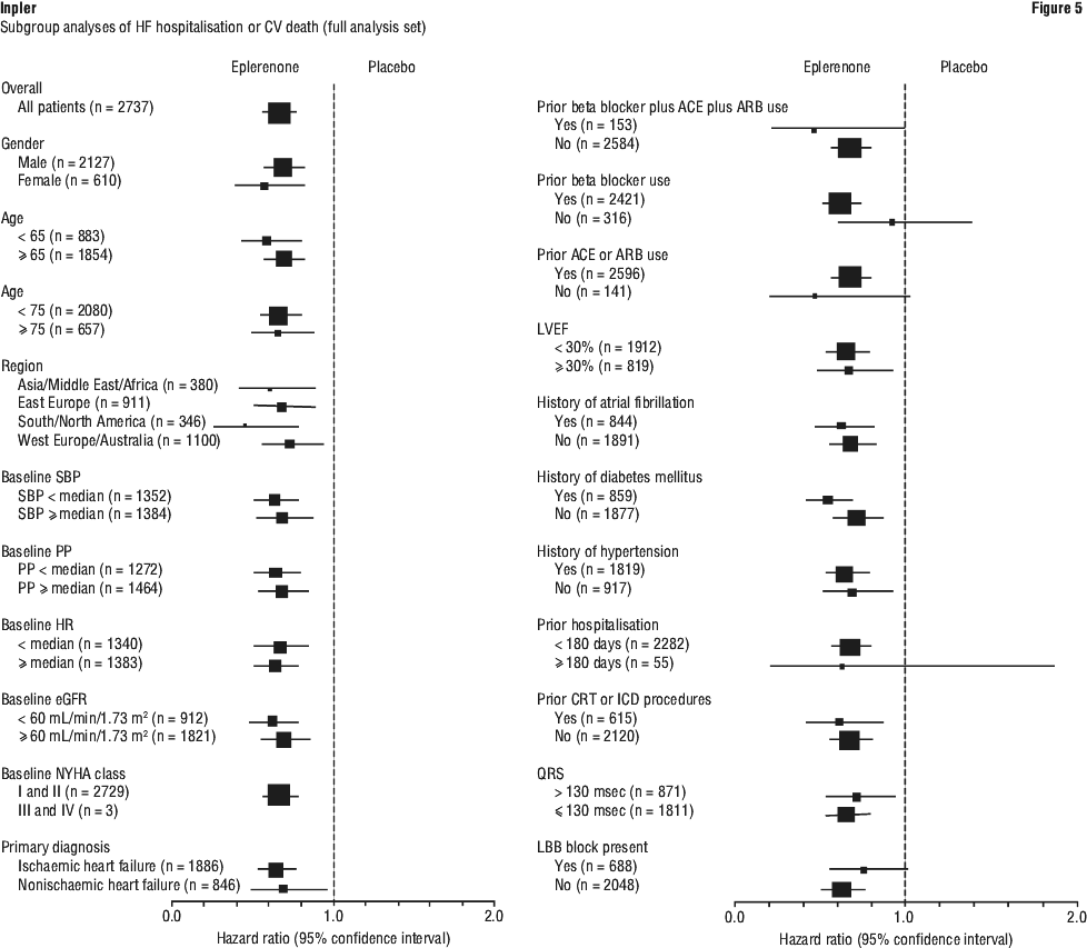In dose-ranging studies of chronic heart failure (NYHA classification II-IV), the addition of eplerenone to standard therapy resulted in expected dose-dependent increases in aldosterone. Similarly, in a cardiorenal substudy of EPHESUS, therapy with eplerenone led to a significant increase in aldosterone. These results confirm the blockade of mineralocorticoid receptors in these populations.