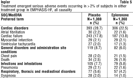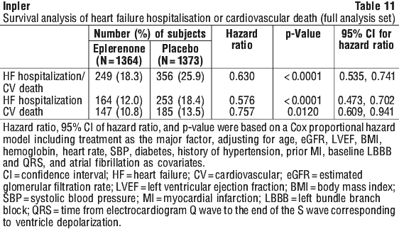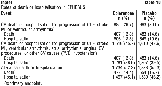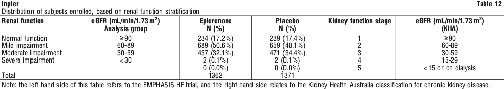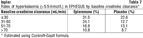 Table 7 shows the rates of hyperkalaemia in EPHESUS as assessed by baseline renal function (creatinine clearance).