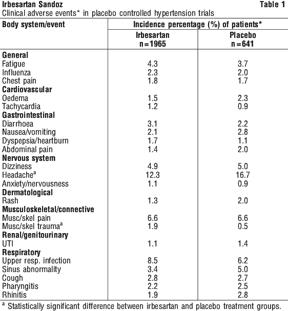 | Stop taking Irbesartan Sandoz and call your doctor straight away or go straight to the Emergency Department at your nearest hospital if you notice any of these serious side effects. |
