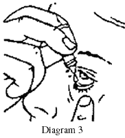 - Put the tip of the dropper close to, but not touching your eye. Release the required number of drops into the pouch/pocket formed between the eye and eyelid by gently squeezing the side of the bottle (see Diagrams 2 and 3).