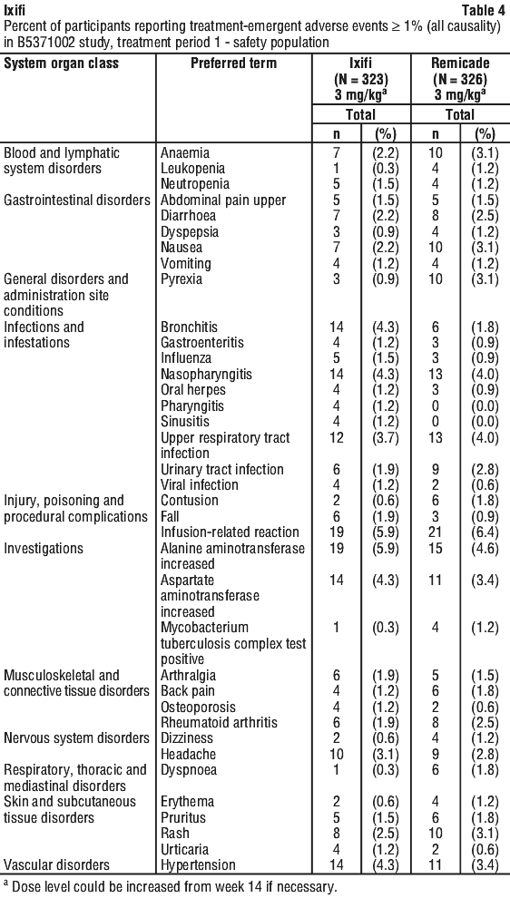 No clinically meaningful differences in safety or immunogenicity were found between Ixifi and Remicade.