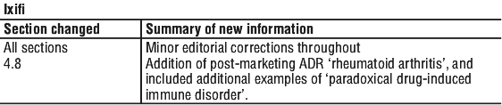 Ixifi is contraindicated in patients with severe infections such as sepsis, abscesses, tuberculosis and opportunistic infections.