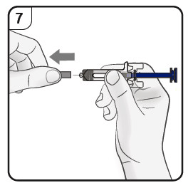 Firmly pull straight to remove the needle cap from the pre-filled syringe. You may see a drop of liquid at the end of the needle. This is normal.