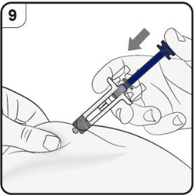 Continue to pinch the skin. Slowly press the plunger as far as it will go. This will ensure that a full dose is injected.