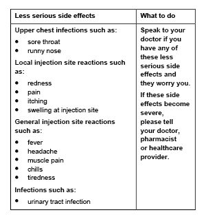 During treatment, you may be at risk of developing certain side effects. It is important you understand these risks and how to monitor for them. See additional information under Section 6. Are there any side effects?