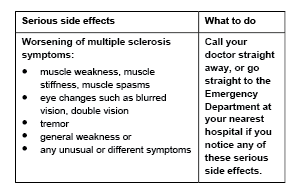 - Believe your multiple sclerosis is getting worse (e.g. weakness or eye changes) or if you notice any new or unusual symptoms – this can be serious.