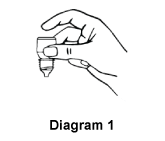 - Hold the bottle upside down in one hand between your thumb and middle finger (see Diagram 1).