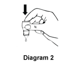 - Put the tip of the dropper close to, but not touching your eye. Release the required number of drops into the pouch/pocket formed between the eye and eyelid by gently squeezing the side of the bottle (see Diagrams 2 and 3).