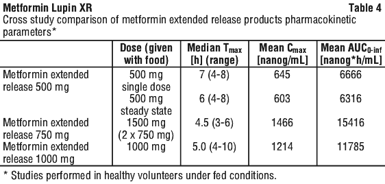Table 4 gives an overview on the main pharmacokinetic parameters of the three metformin extended release strengths under fed conditions: