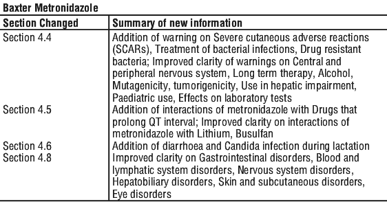For more information, see Section 2. What should I know before I receive METRONIDAZOLE BAXTER? in the full CMI.