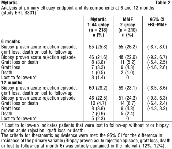 Renal transplant patients were treated with 1440 mg Myfortic daily up to one year. A similar profile was seen in the de novo and maintenance transplant population although the incidence tended to be lower in the maintenance patients.