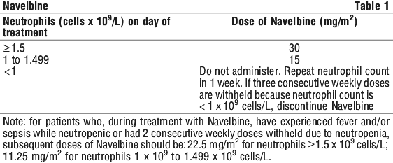 For more information, see Section 5. What should I know while using Navelbine IV? in the full CMI.