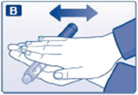 Move the pen up and down between the two positions - as shown in Figure C - at least 10 times until the liquid appears uniformly white and cloudy. If the resuspension procedure alone is not enough to give a uniformly white and cloudy liquid, repeat the rolling and moving procedures (see B and C) until the liquid does appear uniformly white and cloudy.