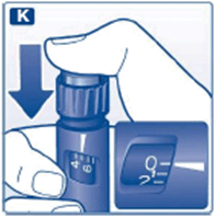 Keeping the needle upwards, press the push-button all the way in. The dose selector returns to 0.