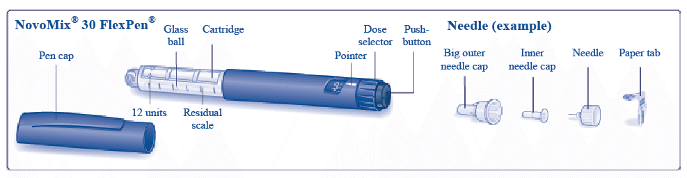 Please read the following instructions carefully before using your NovoMix® 30 FlexPen®. If you do not follow the instructions carefully, you may get too little or too much insulin, which can lead to too high or too low blood sugar levels.