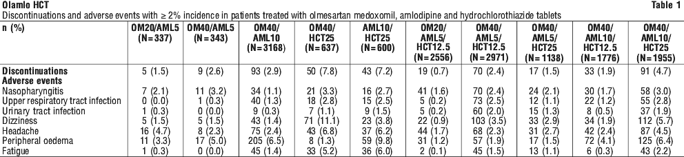 There were no apparent differences in terms of seated diastolic blood pressure (SeDBP) or seated systolic blood pressure (SeSBP) reductions in black and non-black patients treated with olmesartan medoxomil, amlodipine and hydrochlorothiazide tablets.