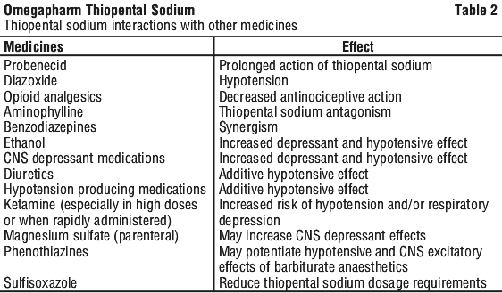 Your doctor and pharmacist may have more information on medicines to be careful with or avoid while taking Omegapharm Thiopental sodium powder for injection