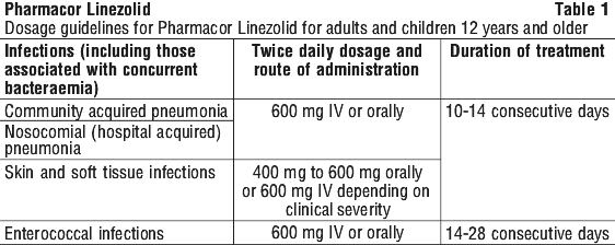 Ask the doctor if you want more information about the dose of PHARMACOR LINEZOLID and how it is given.