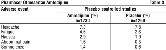 PHARMACOR OLMESARTAN AMLODIPINE helps most people with high blood pressure, but it may have unwanted side effects in a few people. If you are over 65 years of age you may have an increased chance of getting side effects.