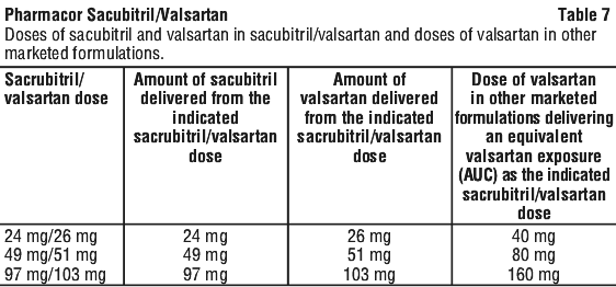The valsartan contained within sacubitril/valsartan is more bioavailable than the valsartan in other marketed tablet formulations. See Table 7.