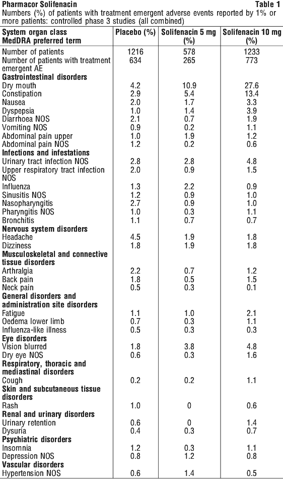 Like all other medicines, PHARMACOR SOLIFENACIN may have unwanted side effects in some people. Sometimes they are serious, most of the time they are not. You may need medical treatment if you get some of the side effects.