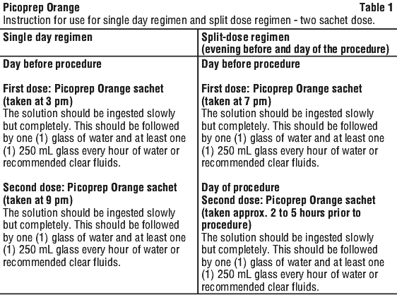 If you are not sure when you should start taking PICOPREP ORANGE contact your doctor, prescriber or pharmacist.