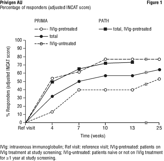 The mean improvement at the end of the treatment period in adjusted INCAT score compared to reference visit was 1.4 points in the PRIMA study (1.8 points in IVIg-pretreated subjects) and 1.2 points in PATH study.