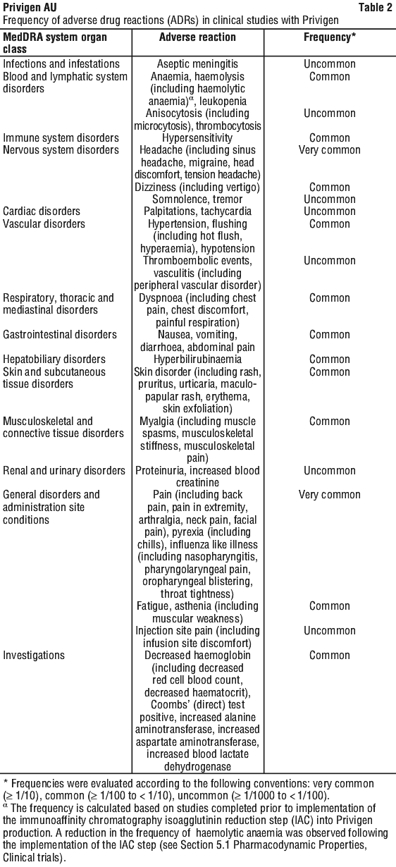 Other side effects not listed above may also occur in some people. For a full list and explanation of the possible side effects associated with Privigen® AU please ask your doctor.