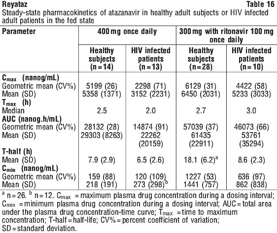 Atazanavir exposures were predicted based on observed data in 167 paediatric patients and 60 adult patients treated with atazanavir with or without ritonavir. See Section 4.4 Special Warnings and Precautions for Use regarding inter-patient variability in atazanavir exposure parameters.