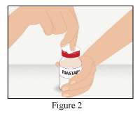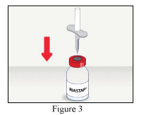 - Remove the safety cap from one end of the provided transfer set and pierce the stopper of the RiaSTAP® vial (Figure 3).