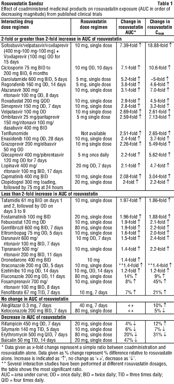 Some medicines may interfere with Rosuvastatin Sandoz and affect how it works. A list of these medicines is in Section 3. What if I am taking other medicines? in the full CMI.
