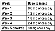 - Your dose may then be increased by 0.6 mg each week until you reach the recommended dose of 3.0 mg once a day.