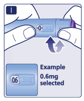 Only doses of 0.6 mg, 1.2 mg, 1.8 mg, 2.4 mg or 3.0 mg must be selected with the dose selector. The selected dose must line up precisely with the dose pointer to ensure that you get a correct dose.