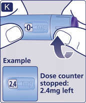 - To see precisely how much solution is left, use the dose counter: Turn the dose selector until the dose counter stops. If it shows 3.0, at least 3.0 mg are left in your pen. If the dose counter stops before 3.0 mg, there is not enough solution left for a full dose of 3.0 mg.