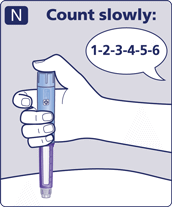 - Continue pressing the dose button while keeping the needle in your skin.