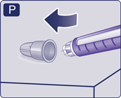 - Pull off the outer needle cap and keep it for later. You will need it after the injection, to safely remove the needle from the pen.