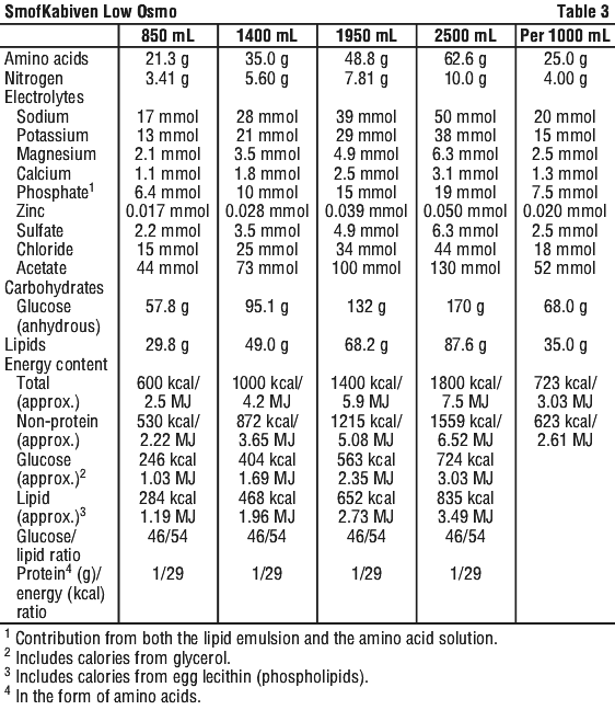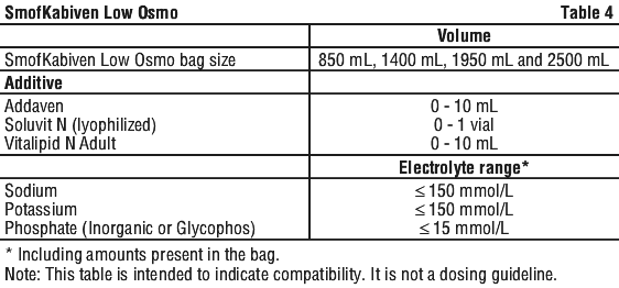 SmofKabiven Low Osmo is not used for newborn babies or children younger than 2 years of age.