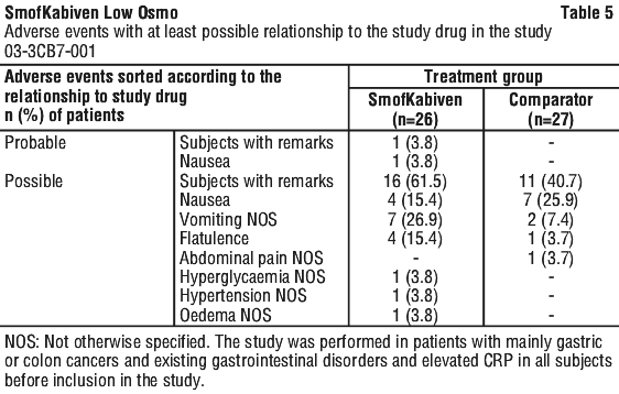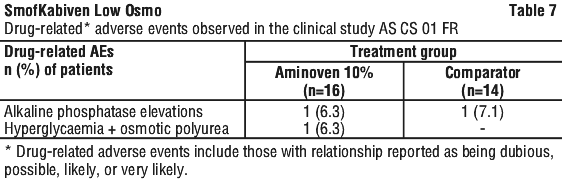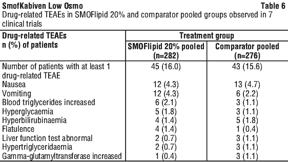 Drug-related adverse events have been reported from 7 clinical studies with the separate components of SmofKabiven, SMOFlipid 20% and Aminoven 10%.