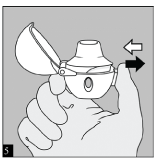 INHALE: Raise the HandiHaler to your mouth and close your lips tightly around the mouthpiece. Keep your head in an upright position and breathe in slowly and deeply but at a rate sufficient to hear or feel the capsule vibrate. Breathe in until your lungs are full; then hold your breath as long as is comfortable and at the same time take the HandiHaler out of your mouth. Resume normal breathing.