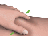 - Gently pinch the skin of the chosen injection area between your thumb and index finger.