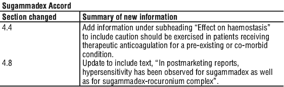 Caution should be exercised when considering the use of sugammadex in patients receiving therapeutic anticoagulation for a pre-existing or co-morbid condition.