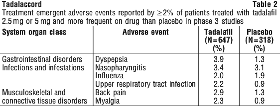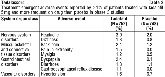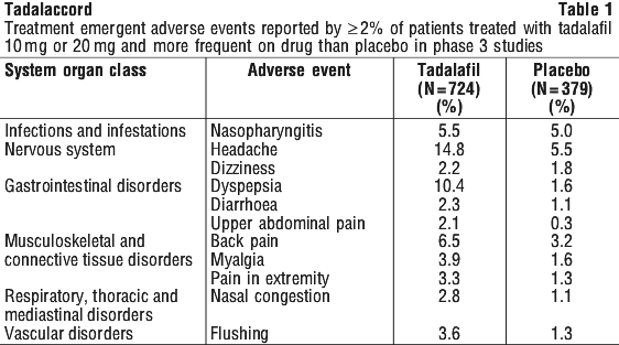 TADALACCORD helps most people with erectile dysfunction or urinary symptoms associated with benign prostatic hyperplasia but it may have unwanted side effects in a few people. All medicines can have side effects.