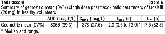 Patients with liver disease should follow their doctor's advice. Once-a-day dosing of TADALACCORD is not recommended in patients with severe hepatic impairment.