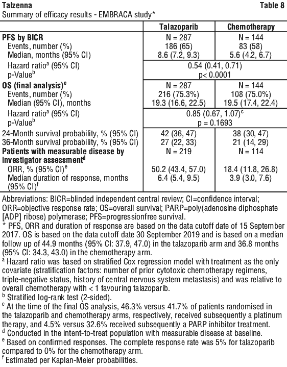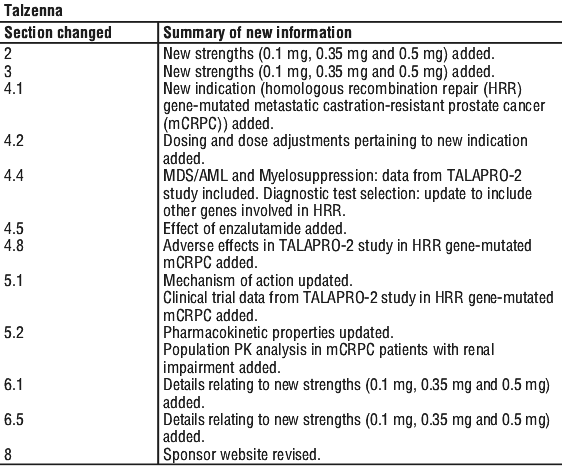 This leaflet provides important information about using TALZENNA. You should also speak to your doctor or pharmacist if you would like further information or if you have any concerns or questions about using TALZENNA.