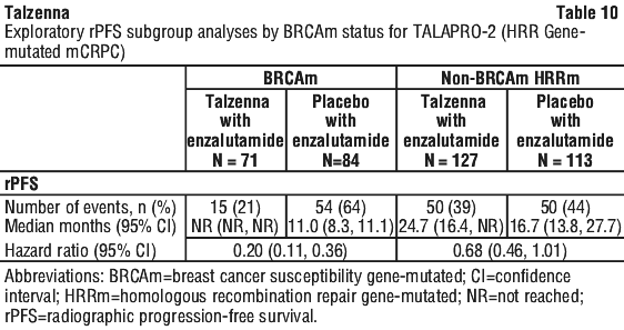 Exploratory subgroup analyses of rPFS for patients with BRCA-mutated (BRCAm) and non-BRCAm HRRm are presented in Table 10.