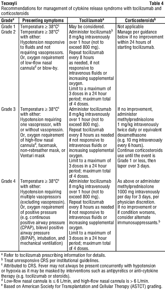 For more information, see Section 5. What should I know while using TECVAYLI? in the full CMI.