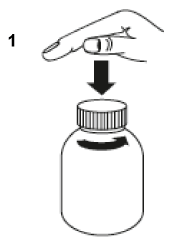 Open the bottle: press the cap and turn it anticlockwise (figure 1).