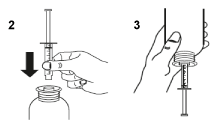 Take the syringe, remove the tip and insert the syringe in the adaptor opening (figure 2). Turn the bottle upside down (figure 3).